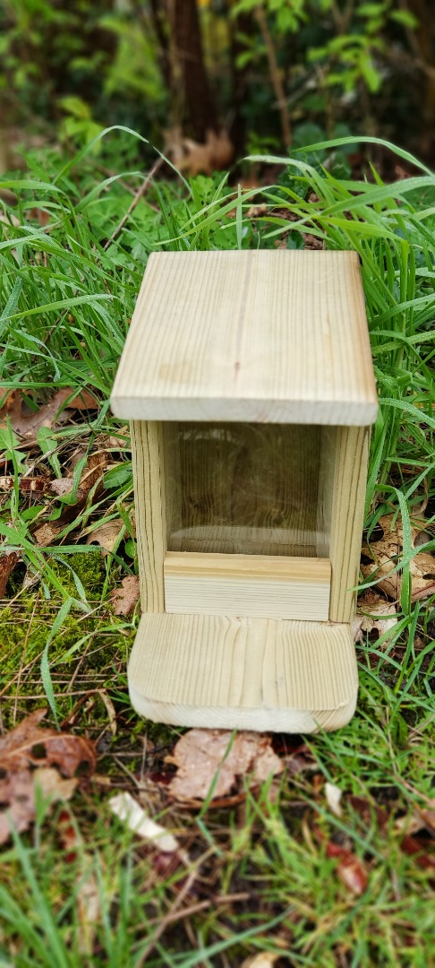 Wil jij ook graag een eekhoorn in de tuin? Bestel dan dit door de leerlingen gemaakte eekhoorn voederhuis.